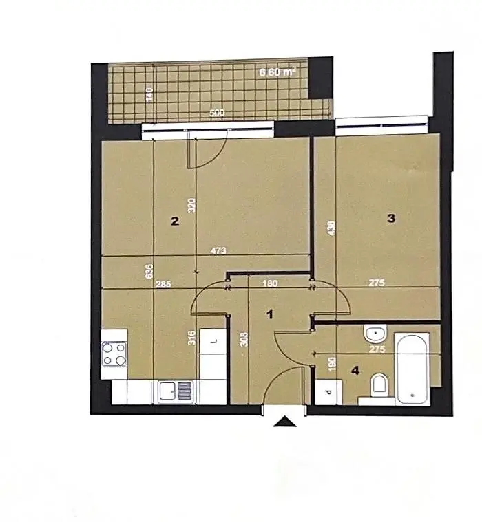 - salonu z wyjściem na balkon typu loggia ( ok. 6 m2 ) oraz aneksu kuchennego zamykanego przesuwnymi drzwiami ( ok. 24 m2 ),